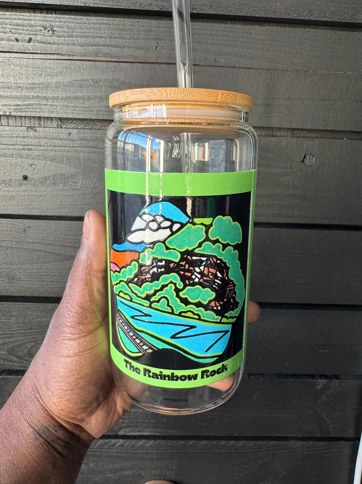 Experience nostalgia with every sip using Leigh Woodward-Glass Tumblers. Hand drawn and painted, these tumblers feature local landmarks of the Alleghany Highlands, evoking childhood memories and showcasing the area's historical places. Bring a touch of charm and history to your drinkware collection.