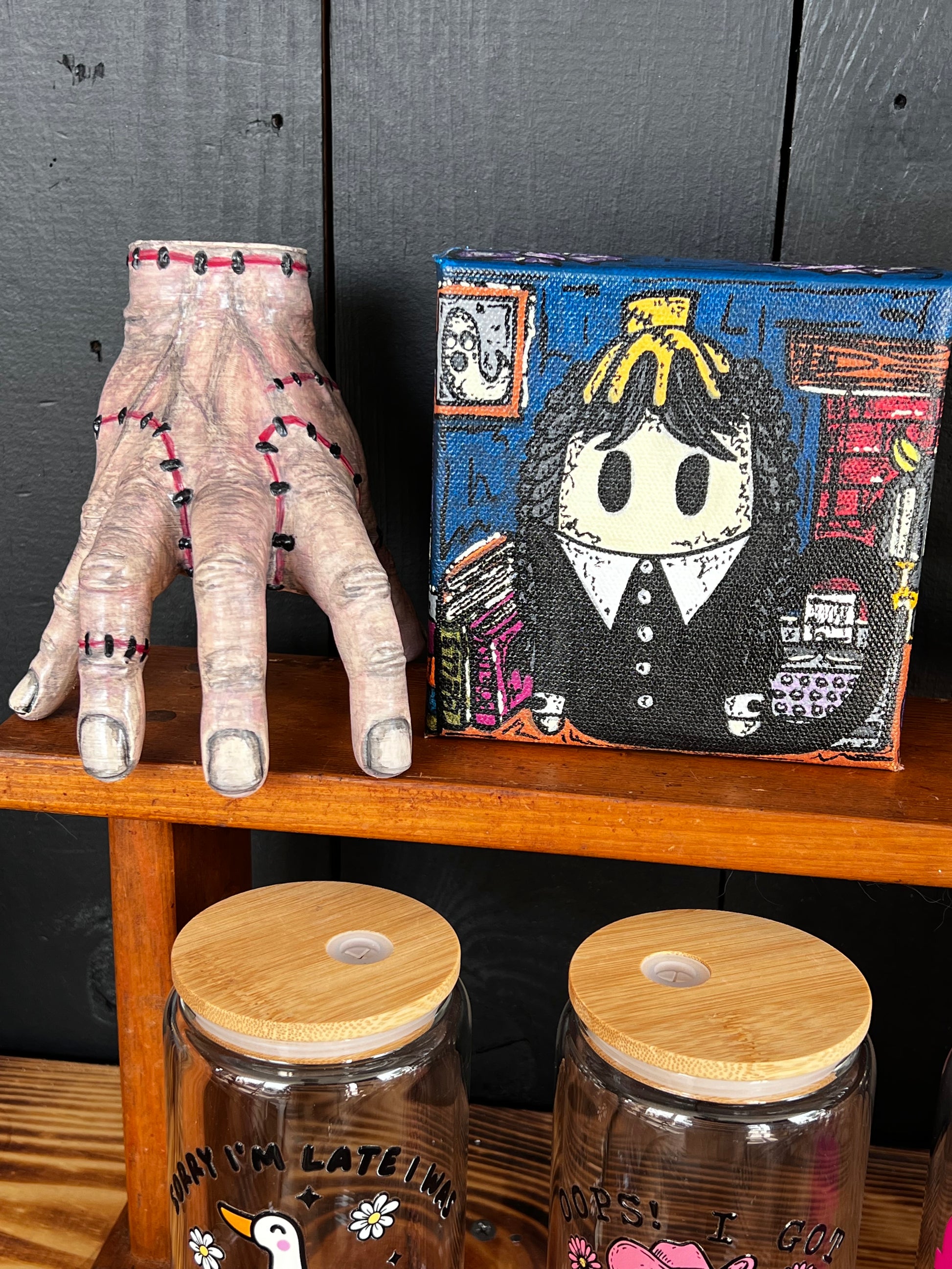 Our favorite ghost of gloom joins her friend thing in this 4x4x2 acrylic painting. Good on a shelf or hanging on the wall, this new piece of art is a must for anyone that is obsessed with the series.